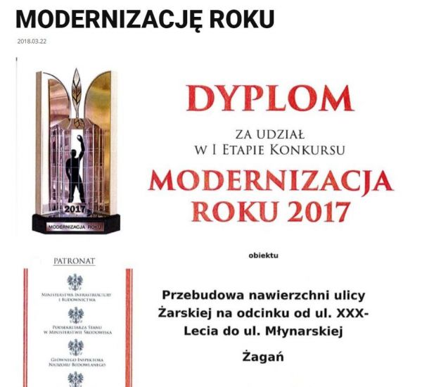 - Modernizacja nawierzchni ul. Żaganny (zabezpieczenie kwoty 285000zł na realizację inwestycji).